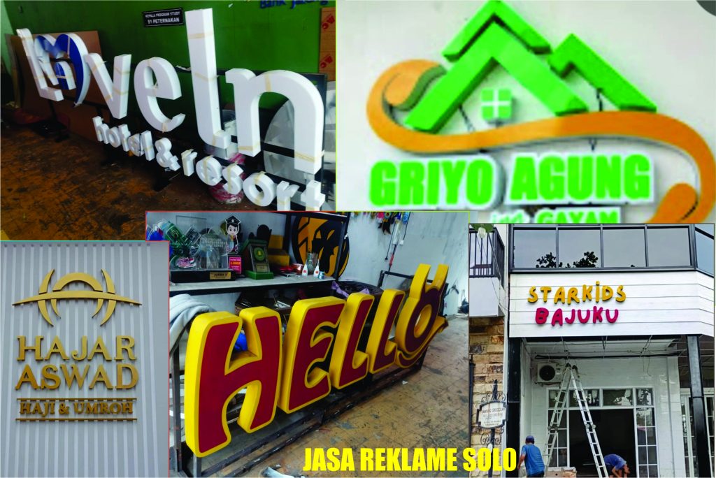 - Huruf timbul menyala terbuat dari akrilik dengan lampu LED didalamnya